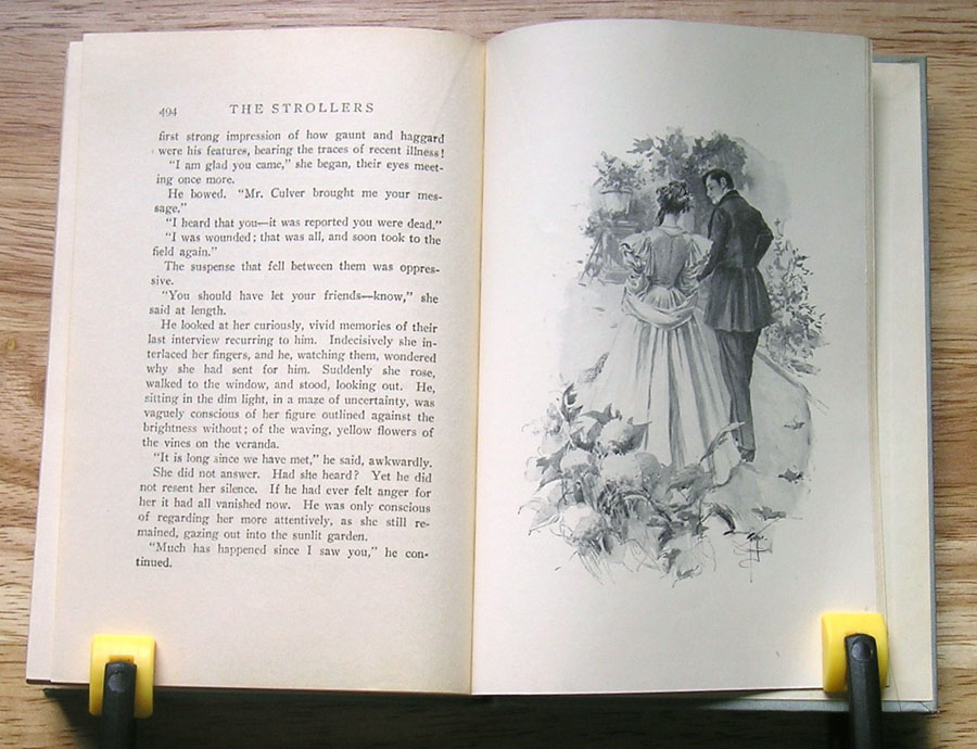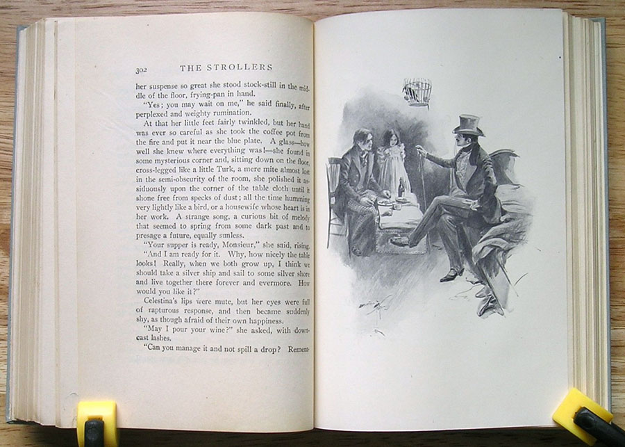 illustrations suggest romance and mystery linked to the theater.